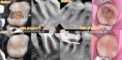Prosedur kedokteran gigi untuk membersihkan dan mengisi bagian dalam gigi yang berisi saraf dan pembuluh darah (pulpa) yang terinfeksi atau rusak, bertujuan untuk menyelamatkan gigi dari pencabutan dan mempertahankan fungsinya. Perawatan ini menghilangkan jaringan pulpa yang sakit, mengatasi nyeri, dan mencegah infeksi menyebar.